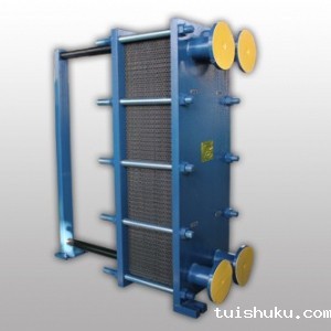 由许多冲压有波纹槽的金属薄板按一定间隔,四周通过垫片密封,并用框架和压紧螺栓重叠压紧而成,板片和垫片的四个角孔形成了流体的分配管和汇集管,同时又合理的将冷热流体分开,使其分别在每块板片两侧的流道中流动,通过板片进行热交换。
