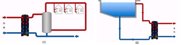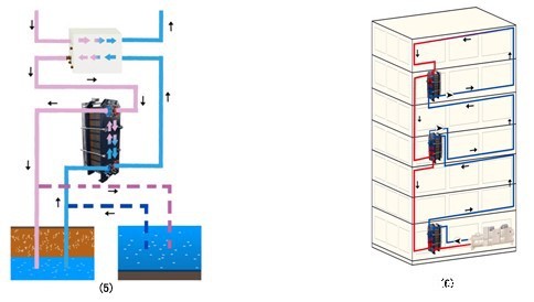 ⑤地源、水源热泵: 换热器作为热泵主机和开放式冷热源的分离装置,克服水质对主机等敏感设备的腐蚀。(图5)