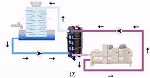 换热器的使用将开式冷却循环系统和机组的闭式循环系统分隔开,有效的保护了机组闭式循环系统的洁净,延长了机组的使用寿命。(图7)